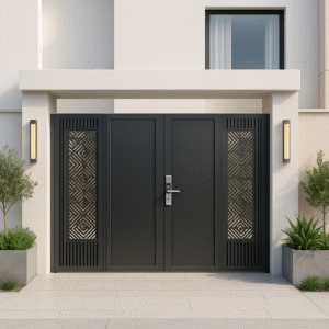 Integra firmeza, delicadeza y un diseño meticuloso que realza la seguridad sin perder sofisticación. Cada línea aporta equilibrio, generando una entrada acogedora, moderna y visualmente poderosa.